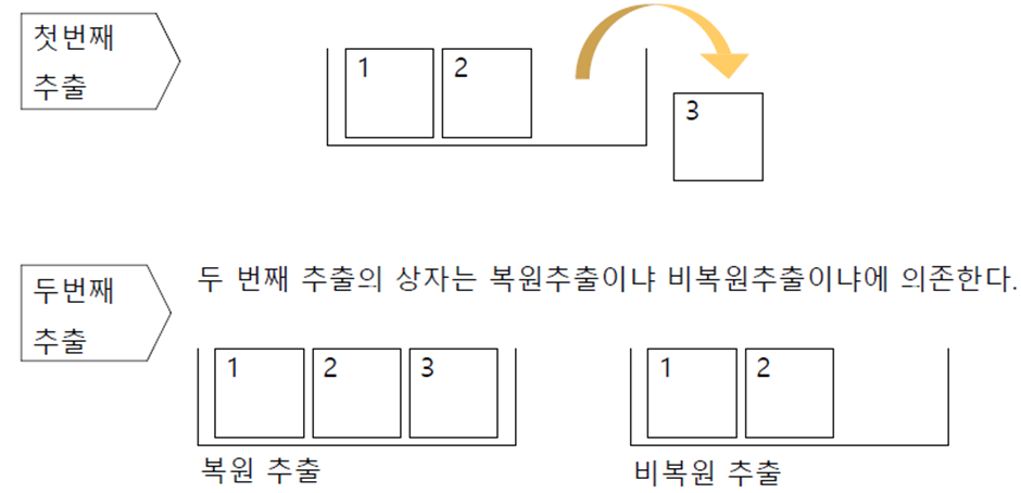 - 비복원 추출이므로 경우의 수는 순열의 경우를 적용할 수 있다.