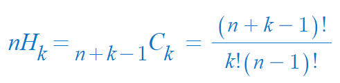 - 분모 분자에 1 x 2 x ...x (n-1) 에 각각 곱해주면, 분자는 (n+k-1) ! 이 되고, 분자는 k! (n-1) ! 이 된다.