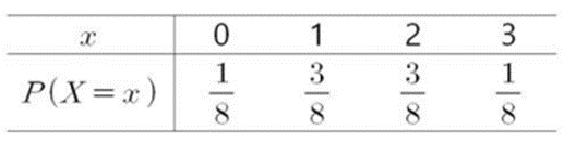 - 확률변수 X(앞면의 수) 의 값은 0, 1, 2, 3 으로 나타난다.