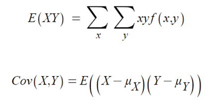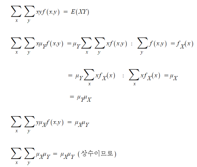 ※ X와 Y가 독립이면, E(XY) = E(X) E(Y) 따라서 Cov(X,Y) = 0 이 된다.