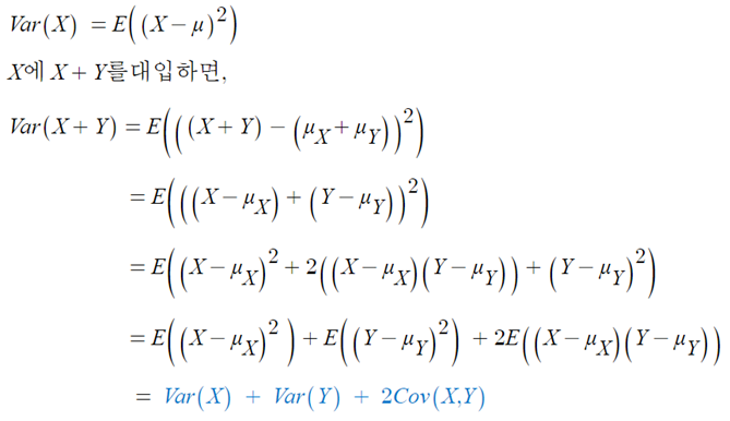 - X와 Y가 독립이면, Var(X±Y) = Var(X)+Var(Y)