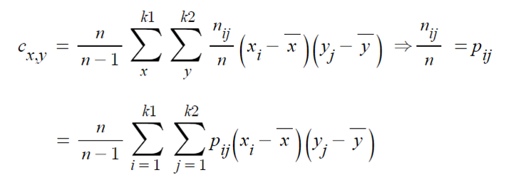 - 위의 표본공분산 식을 아래와 같이 변형시키면,