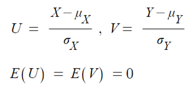 - 확률변수 X,Y를 표준화하면,