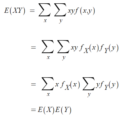 - X와 Y가 독립이면, E(XY) = E(X) E(Y)