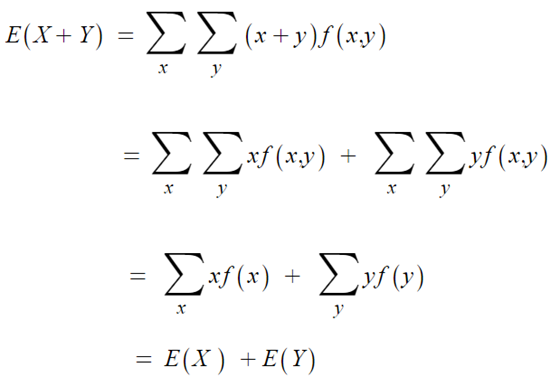- E(X+Y) = E(X) + E(Y)