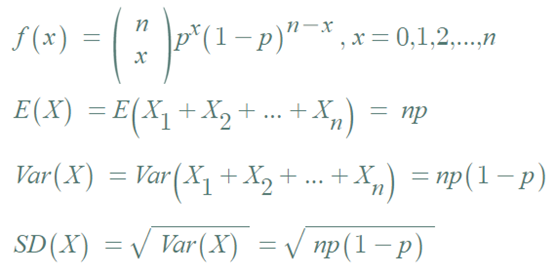 ◈ 이항분포의 확률질량함수, 기대값, 분산, 표준편차