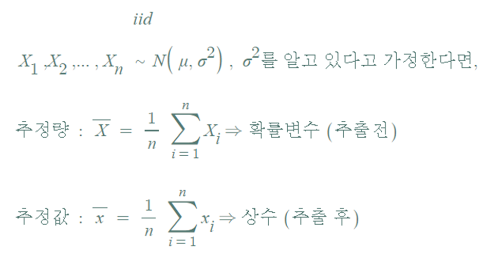 - 추정치(estimated value : 추정값) : 추정량의 관측값