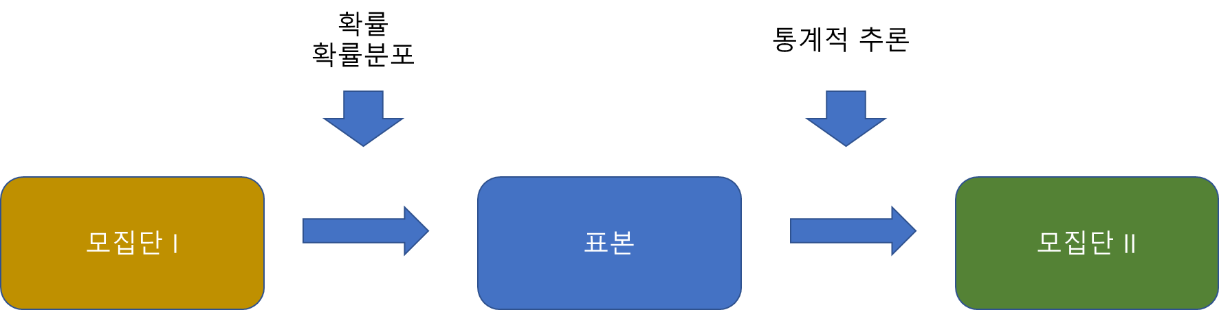 - 즉, 통계적 추론은 모집단II를 모집단I 과 같게 만드는 과정이라 할 수 있다.