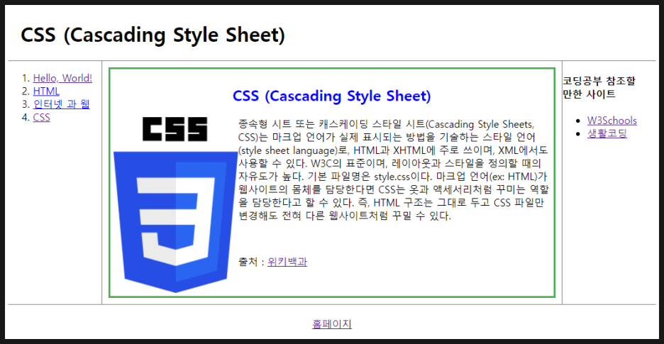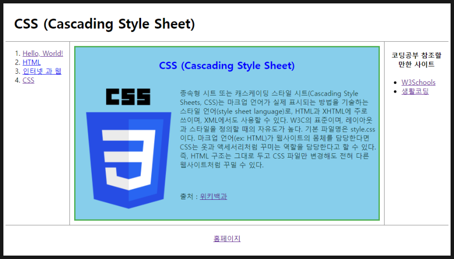 <p> 출처 : <a href="https://ko.wikipedia.org/wiki/CSS">위키백과 </a> </p>
