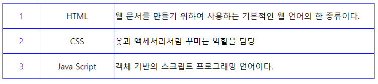 <td>웹 문서를 만들기 위하여 사용하는 기본적인 웹 언어의 한 종류이다. </td>