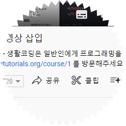 저는 생활코딩유튜브에서 동영상 삽입하는 방법 관련 동영상을 가져오겠습니다.