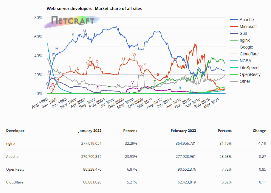 최근 웹서버의 점유율을 보자면,