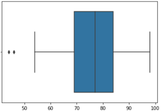 → 왼쪽부터 최소값 , 1분위수, 2분위수(중앙값), 3분위수, 최대값을 표현한다. 예제에서 44,69,77,84,98 이다.
